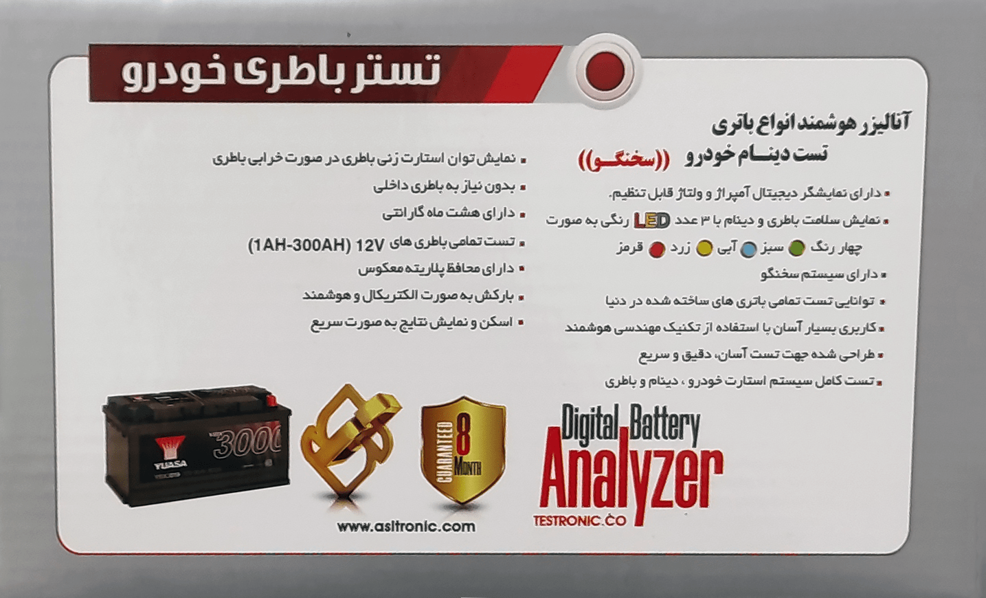 ویژگی های تستر باتری و دینام هوشمند مدل asl2000