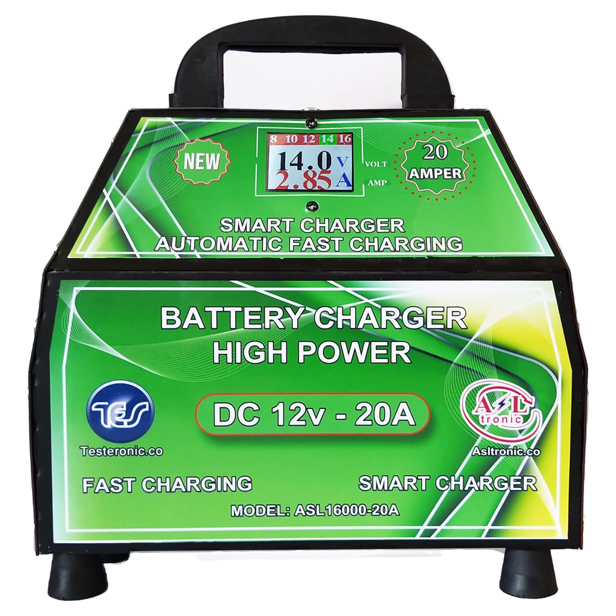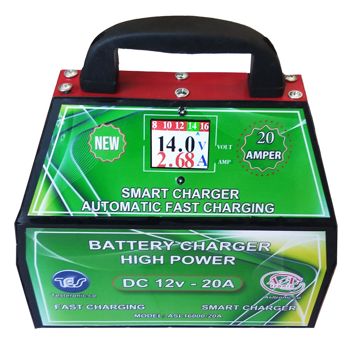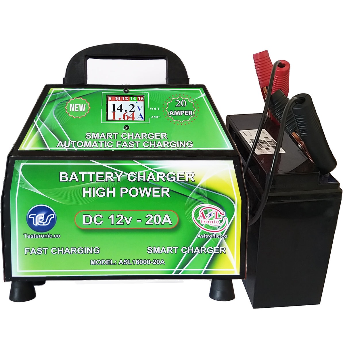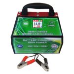 شارژر سریع و اتوماتیک انواع باتری های خودرویی، موتوری و یو پی اس. این شارژر با استفاده از آخرین تکنولوژی سوئیچینگ روز دنیا جریان شارژ باتری را متناسب با ظرفیت و میزان شارژ اولیه ی باتری مشخص می کند. جریان شارژ رفته رفته با توجه وضعیت باتری کاهش داده شده و سرانجام پس از شارژ کامل جریان شارژ به محدوده صفر خواهد شد. این شارژر دارای نمایشگر LCD ولتاژ و جریان باتری در حال شارژ بوده و لحظه به لحظه مقادیر ولتاژ باتری را را به صورت نموداری ثبت می کند. سر انجام با فول شارژ شدن باتری ولتاژ به حداکثر یعنی حدود ۱۴.۷ تا ۱۴.۹ می رسد. و جریان شارژ به حداقل یا صفر می رسد. این شارژر بالاترین محافظت را برای شارژ مناسب و جلوگیری از آسیب به باتری دارد. برای شروع شارژ باتری کافیست برق دستگاه وصل شده و کلید شارژ روشن شود. با اتصال گیره های دستگاه به دو سر باتری وضعیت شارژ باتری برروی LCD دستگاه به صورت آمپر و ولتاژ مشخص شده است. در ابتدا نمایشگر آمپر روی دستگاه مقداری را نمایش می دهد که نشان دهنده خالی بودن باتری و جریان کشی آن است. با افزایش شارژ مقدار ولتاژ از مقدار اولیه نمایش داده شده بیشتر می شود اما مقدار جریان نمایش داده شده اولیه کاهش می یابد تا به صفر برسد.